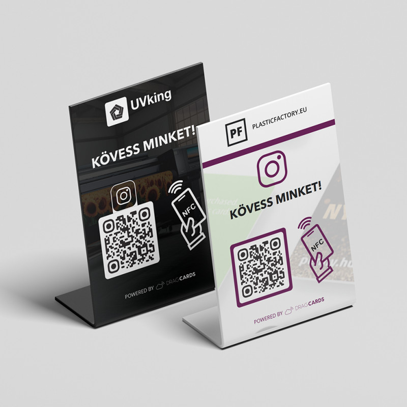 A Pro Instagram követésgyűjtő tábla teljesen testreszabható grafikával érkezik, így a márkád vizuális megjelenése is erősíti a profilod vonzerejét. Az NFC és QR-kód technológiának köszönhetően az ügyfelek egyetlen érintéssel követhetnek, applikáció nélkül. Egyszeri befektetéssel hosszú távon gyűjtheted az aktív követőket. Profi és modern megjelenést biztosít minden helyzetben, miközben gyors és egyszerű használatot kínál. Válaszd a Pro táblát, és építs stabil, növekvő Instagram közösséget.