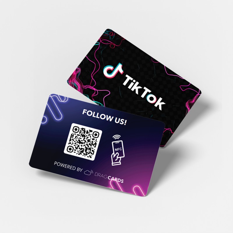 A TikTok követésgyűjtő kártyához egy közvetlen TikTok-profil link tartozik, amelyet NFC-vel vagy QR-kóddal egyetlen mozdulattal megnyithatnak az ügyfelek, applikáció nélkül.