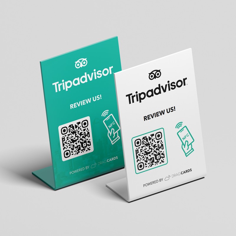 A tábla QR-kóddal és NFC-vel azonnal a Tripadvisor értékelési oldaladra irányítja az ügyfeleket, applikáció nélkül.