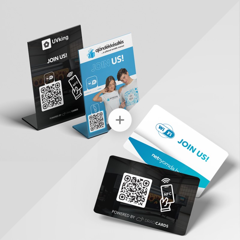 Használd a csomagot, és tedd a Wi-Fi hozzáférést profivá és egyszerűvé logózott kártyával és táblával.