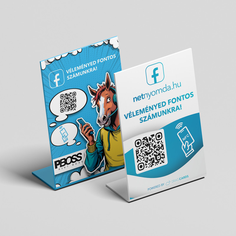 Szeretnéd, ha a tábla teljesen a márkádhoz illeszkedne? A Pro Facebook követésgyűjtő tábla testreszabott grafikával érkezik, így a vizuális megjelenésed is erősíti a profilod vonzerejét. Az NFC és QR-kód technológiának köszönhetően az ügyfelek egyetlen érintéssel az oldaladra jutnak, applikáció nélkül. Profi és modern dizájnnal emeli a vállalkozásod megítélését minden ügyféltalálkozásnál. Egyszeri befektetéssel folyamatosan növelheted a követőid számát és online láthatóságodat. Válaszd a Pro táblát, és építs erős, aktív közönséget gyorsan és egyszerűen.